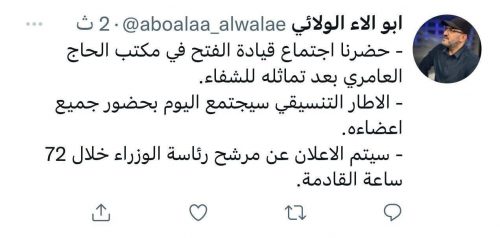 بتغريدة :الاطار التنسيقي يعلن حسم مرشح رئاسة الوزراء خلال 72 ساعة