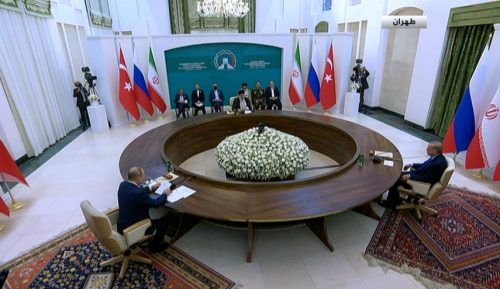 ويشارك في القمة الرئيس الإيراني إبراهيم رئيسي والرئيس الروسي فلاديمير بوتين والرئيس التركي رجب طيب أردوغان وبدأت أعمالها في العاصمة الايرانية طهران.