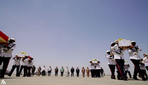 استقبل رئيس مجلس وزراء العراق مصطفى الكاظمي اليوم الخميس، جثامين شهداء الاعتداء التركي، الذي استهدف يوم أمس المدنيين في أحد المنتجعات السياحية بمحافظة دهوك.