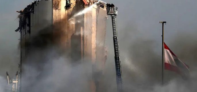 تجدد اشتعال حريق بشكل كبير في إهراءات القمح بمرفأ بيروت