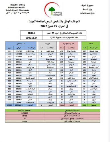 الصحة تسجل 2953 اصابة جديدة بكورونا