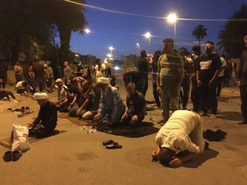 وقال مصدر ان”المتظاهرين اقاموا الصلاة وباشروا بالانسحاب من المنطقة الخضراء وسط بغداد”.