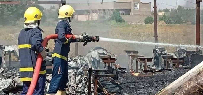 اخماد حرِيقًا التهم مدرسة كرفانية في الديوانية