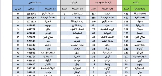 الصحة تسجل 1273 إصابة جديدة بكورونا