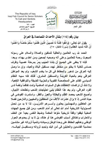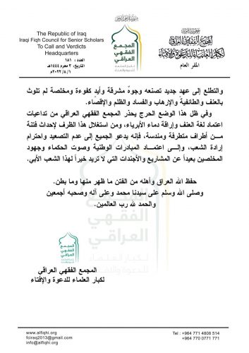 المجمع الفقهي يدعو لعدم التصعيد واحترام ارادة الشعب واعتماد المبادرات الوطنية