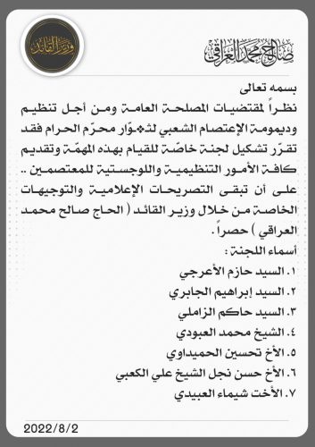 بالاسماء.. الصدر يشكل لجنة سباعية لتنظيم اعتصام الخضراء