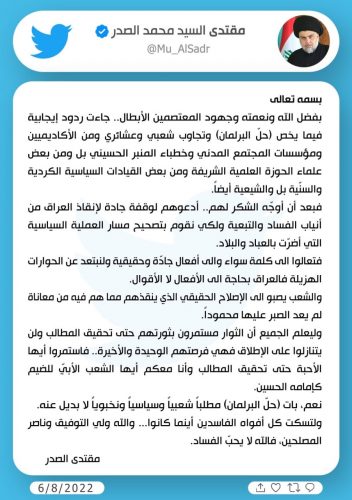 الصدر : الشعب يصبو الى الإصلاح