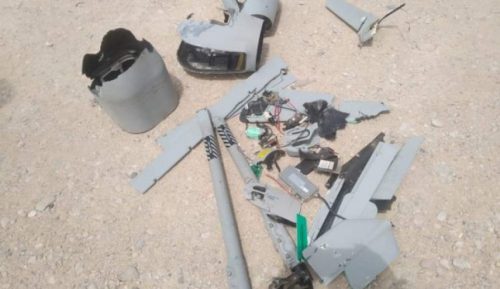 وقال الحريزي الذي نشر صورة لحطام الطائرة في تغريده له على تويتر: “اليوم خلف مدينة قشن وجدوا طائرة تجسس تابعة لدول الاحتلال وقد تحولت إلي كومة خردة على الأرض بهذا الشكل”.