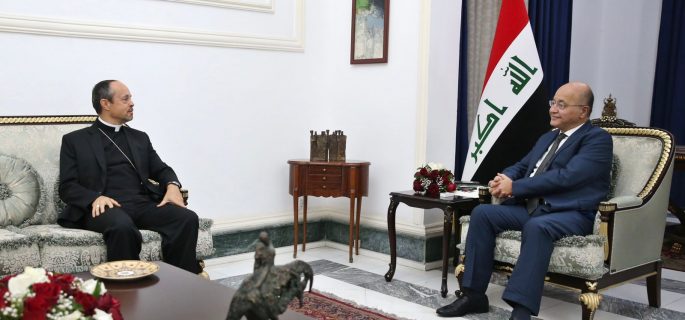 وجاء في بيان لرئاسة الجمهورية تلقت*الرأي* الدولية نسخه منه، أن “رئيس الجمهورية برهم صالح استقبل، اليوم، سفير دولة الفاتيكان لدى العراق ميتجا لسكوفار”.