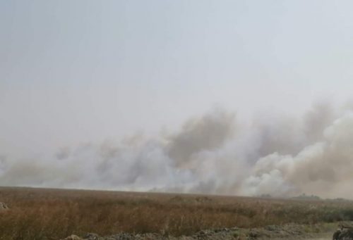 واندلعت النيران في مساحات من القصب والحشائش في اهوار الچبايش بالقرب من منازل السكان.