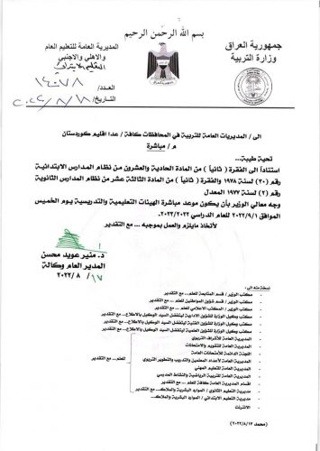 بالوثيقة : التربية تحدد موعد مباشرة المعلمين والمدرسين في مدارسهم للعام الدراسي الجديد