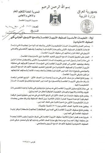 التعليمات الاساسية لصفوف التربية الخاصة والدمج التربوي الشامل