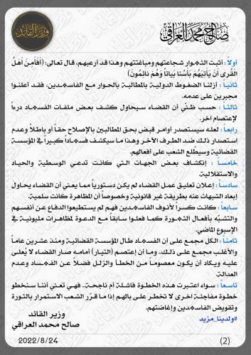 بيان جديد من “وزير الصدر” بشأن الاعتصام أمام مجلس القضاء