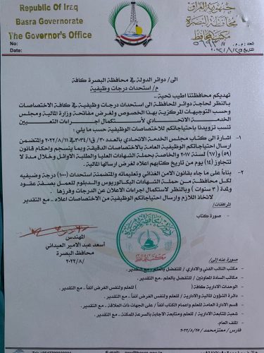 بالوثيقة.. العيداني يخاطب الدوائر لاستحداث درجات وظيفية ضمن قانون الدعم الطارئ