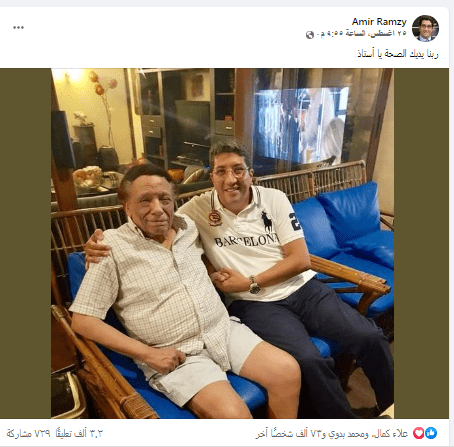 وتزامن نشر الصورة الذي جاء على صفحة أمير رمزي بموقع “فيسبوك” مع شائعات حول تدهور الحالة الصحية لعادل إمام.