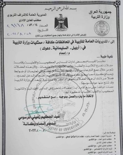 بالوثيقة.. التربية تمنع إقامة حفلات التخرج في المدارس