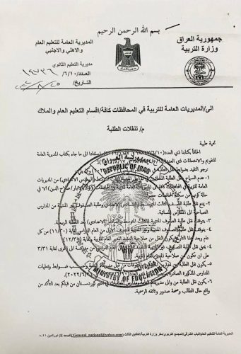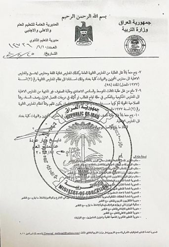 بالوثائق: التربية تعلن ضوابط نقل الطلبة بين المدارس والمديريات العامة في المحافظات