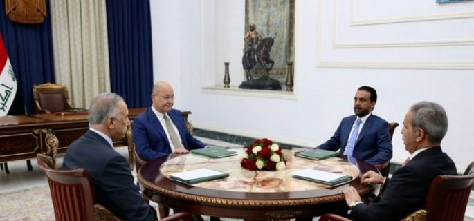 وذكر المكتب الاعلامي للرئيس العراقي في بيان أن “الاخير استضاف اجتماعا ضم رئيس مجلس الوزراء مصطفى الكاظمي، ورئيس مجلس النواب محمد الحلبوسي، ورئيس مجلس القضاء الأعلى القاضي فائق زيدان، لبحث المستجدات على الساحة الوطنية”.