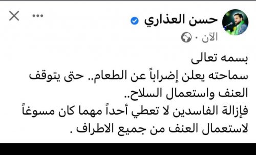 الصدر يضرب عن الطعام حتى يتوقف العنف واستعمال السلاح