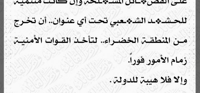 الصدر يدعو لاخلاء الخضراء من الفصائل المسلحة