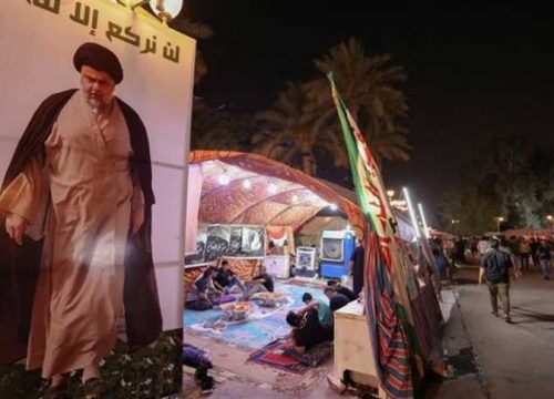 واقتحم العشرات من أنصار مقتدى الصدر، المنطقة الخضراء في بغداد، أمس الاثنين، بعد وقت قصير من إعلانه اعتزال السياسة، واستخدمت الشرطة خراطيم المياه ضد المتظاهرين، حيث يقع المبنى الحكومي والسفارات الأجنبية.