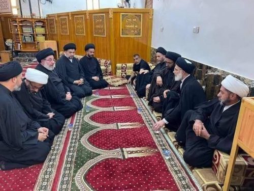 وقال إعلام التيار الصدري إن “المرجع الأعلى السيد علي الحسيني السيستاني (دام ظله) بعث بوفد لمجلس العزاء المقام في جامع الزهراء في النجف”.