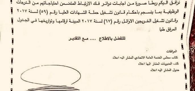 بالوثيقة.. محافظة بغداد ترفع حاجتها من الدرجات الوظيفية للشهادات العليا والاوائل