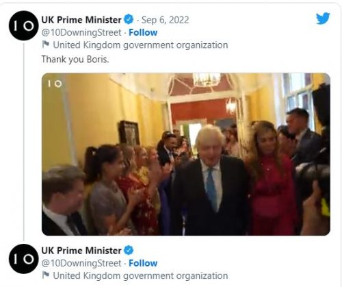 وقبل توجهه الى قلعة بالمورال، كان جونسون، قد تعهد في خطاب الوداع، لدى مغادرته مقر رئاسة مجلس الوزراء، بدعم خليفته ليز تراس والحكومة الجديدة في كل خطوة.
