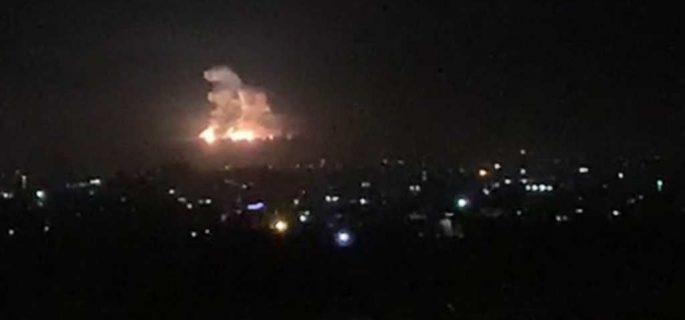 An image grab shows on November 20, 2019 smoke and fire billowing during a reported Israeli air strike on the outskirts of Damascus. - The Israeli army confirmed that it carried out strikes against military sites in Damascus today, in response to rocket fire from Syria the previous day. "We just carried out wide-scale strikes of Iranian Quds Force & Syrian Armed Forces targets in Syria in response to the rockets fired at Israel by an Iranian force in Syria," the Israel Defense Forces tweeted. Syria's state media earlier said Syrian anti-aircraft defences intercepted a "heavy attack" by Israeli warplanes over the capital Damascus. (Photo by - / AFP)