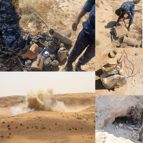 وذكر بيان للقيادة تلقت*الرأي* الدولية نسخه منه، ان قوة من اللواء الثاني عشر الفرقة الثالثة شرطة اتحادية ترافقها مفارز الاستخبارات والطائرات المسيرة نفذت واجب تفتيش وتطهير ضمن قاطع المسؤولية في محيط قضاء الحويجة في محافظة كركوك، أسفر عن العثور على كدس يحتوي على عبوتين محلية الصنع نوع بلازما ، 4 عبوة محلية الصنع نوع اسطوانية ، 10 مقذوفات حربية مختلفة ، عبوتين محلية الصنع نوع جليكان سعة ٥ لتر ، 140 لغم مختلف الأنواع ضد الأشخاص وضد الدرع، بالإضافة إلى تدمير نفق تستخدمه فلول العصابات الارهابية المهزومة عُثر بداخله على بطاقات تعبئة موبايل ومواد طبية وما تسمى كفالات تم ضبطها اصوليا وتسليمها الى الجهات المختصة٠ انتهى