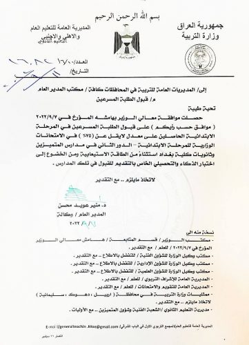 بالوثيقة :التربية توافق على قبول الطلبة المسرعين في المرحلة الابتدائية بمدارس المتميزين