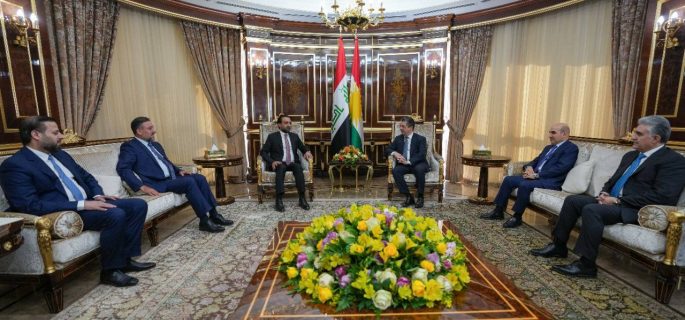 التقى رئيس مجلس النواب محمد الحلبوسي، برافقة رئيس تحالف السيادة خميس الخنجر، الاحد، برئيس حكومة إقليم كردستان مسرور بارزاني.