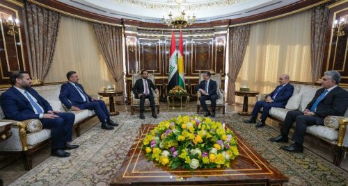 التقى رئيس مجلس النواب محمد الحلبوسي، برافقة رئيس تحالف السيادة خميس الخنجر، الاحد، برئيس حكومة إقليم كردستان مسرور بارزاني.