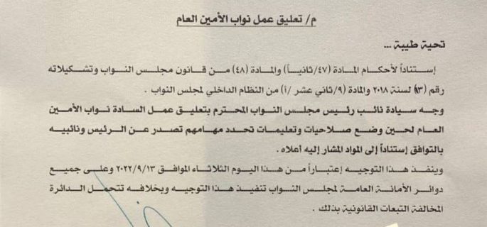 بالوثيقة.. تعليق عمل اعضاء في البرلمان