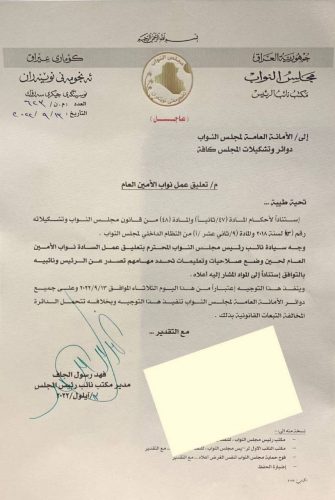بالوثيقة.. تعليق عمل اعضاء في البرلمان
