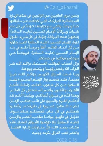 الخزعلي لزوار الاربعين: لا تهتموا لأبواق النشاز فقد فشلت محاولات اثارة الفتنة