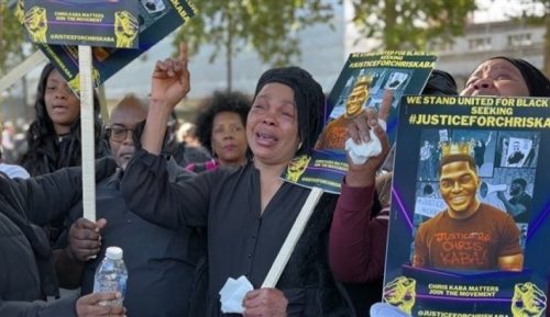 تجمع عشرات المتظاهرين أمام مقرّ شرطة العاصمة لندن احتجاجاً على مقتل شاب أسود يدعى “كريس كابا” البالغ 24 عاماً برصاص عناصر من الشرطة.