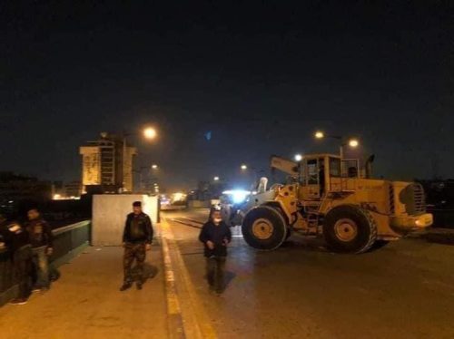 أغلقت القوات الأمنية جسر السنك بالكتل الكونكريتية .