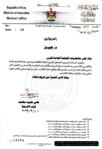 التربية تمنح مدراء التربية بالمحافظات صلاحية منح الدوام للطلبة بالتنسيب