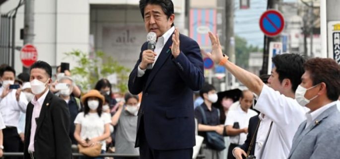 واغتيل آبي برصاص رجل كان يحمل سلاحا محلي الصنع أطلق عليه النار من مسافة قريبة أثناء حملة انتخابية في مدينة نارا غرب البلاد. وسبب ذلك صدمة في اليابان التي نادرا ما تشهد جرائم عنيفة وتميل الشخصيات المرموقة فيها إلى التنقل بحراسة بسيطة فقط.