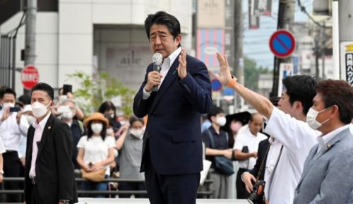واغتيل آبي برصاص رجل كان يحمل سلاحا محلي الصنع أطلق عليه النار من مسافة قريبة أثناء حملة انتخابية في مدينة نارا غرب البلاد. وسبب ذلك صدمة في اليابان التي نادرا ما تشهد جرائم عنيفة وتميل الشخصيات المرموقة فيها إلى التنقل بحراسة بسيطة فقط.