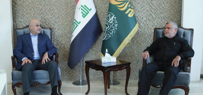 استقبل زعيم تحالف الفتح هادي العامري، الخميس، رئيس الجمهورية برهم صالح في مكتبه بالعاصمة بغداد.