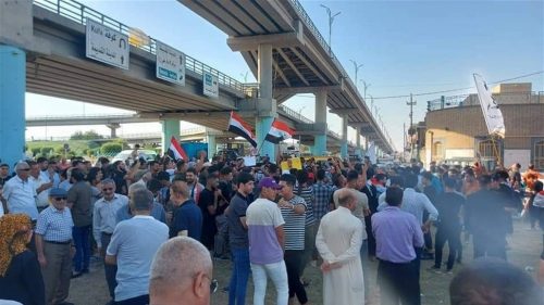كما ان “المتظاهرين رفعوا اعلام العراق ولافتات تطالب بإنقاذ العراق من الفساد والمحاصصة السياسية”. انتهى