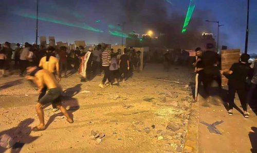 تصعيد بين المتظاهرين والقوات الامنية على جسر الجمهورية