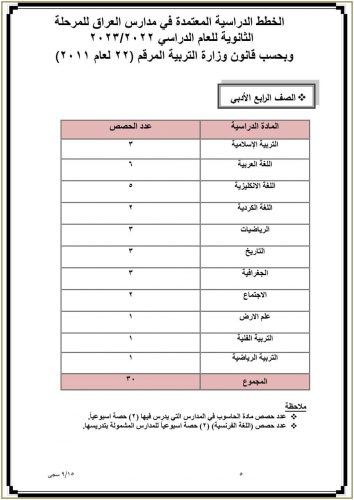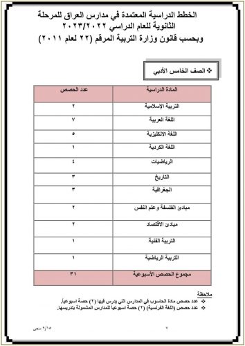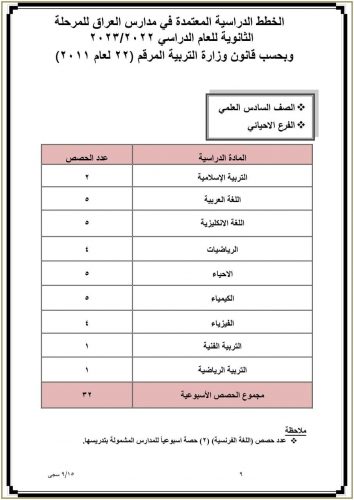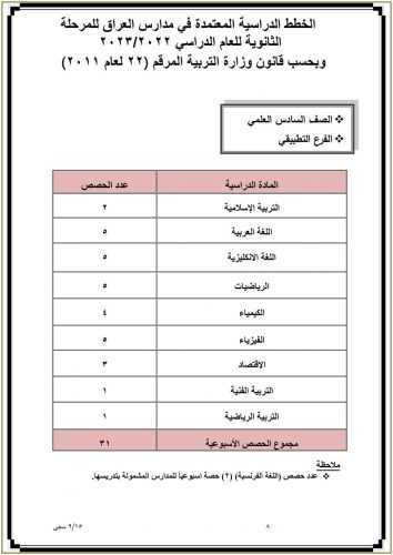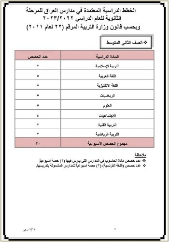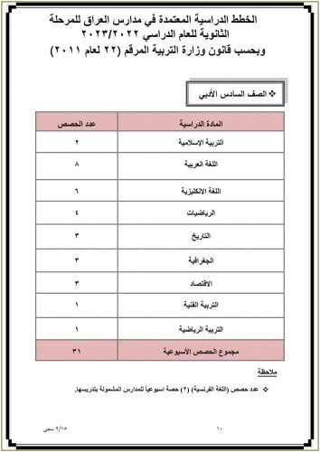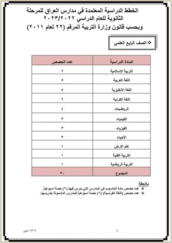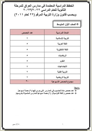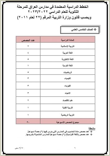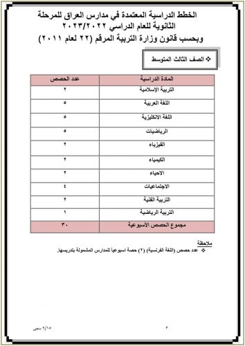 وزارة التربية تنشر جدول عدد الحصص الدراسية المعتمد في مدارس العراق للدراسة الثانوية