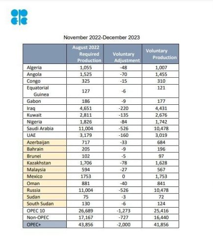 أوبك تعلن جدول تخفيض الإنتاج النفطي للدول اعتبارا من الشهر المقبل