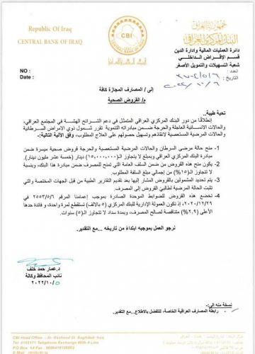 البنك المركزي يعلن عن القروض الصحية