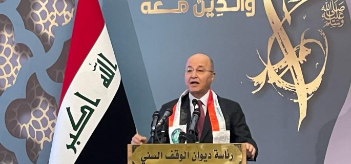 وختم الرئيس صالح أن” العراقيين يصرّون على وطن له سيادة كاملة يعيش في أمن مع شعبه ومع جيرانه وأخذ مكانته الحضارية في المنطقة والعالم”.انتهى