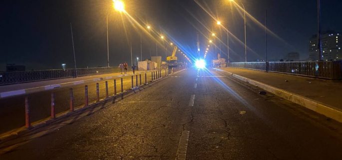 القوات الأمنية تباشر بإغلاق جسر السنك وانزال الصبات الكونكريتية بالقرب من التحرير