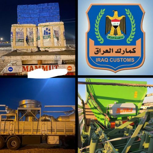 واضاف البيان أن ” الشاحنات المخالفة محملة ( اجزاء معمل ملح و ماكنة لنثر المواد الاولية و الات و اجهزة ترشيح و خشب و سجاد و مواد غذائية)”.